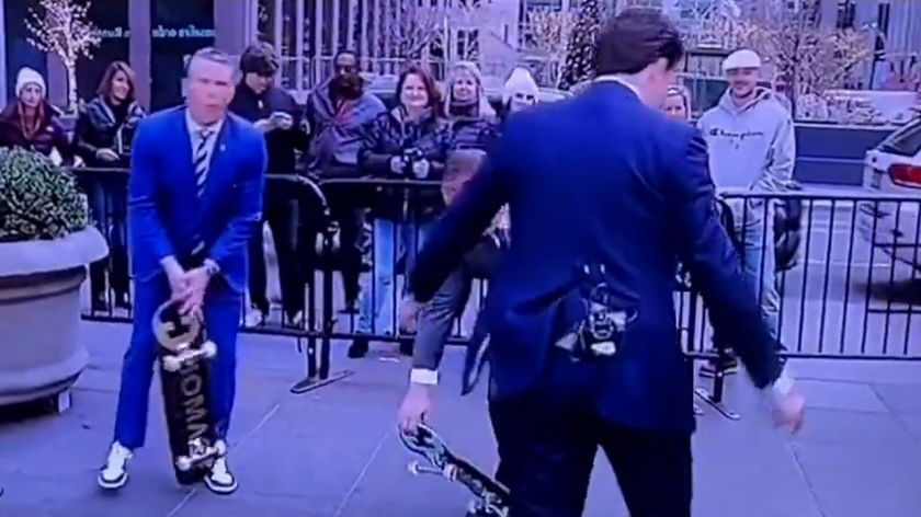 Во время попытки просто поднять доску в руки, чтобы дальше начать тренировку глава военного ведомства слишком сильно ударил ногой по краю. В результате скейт сильно отскочил вверх и ударил Хегсета прямо между ног в прямом эфире. За происходящим наблюдали не только тысячи американцев, но и люди на улице.